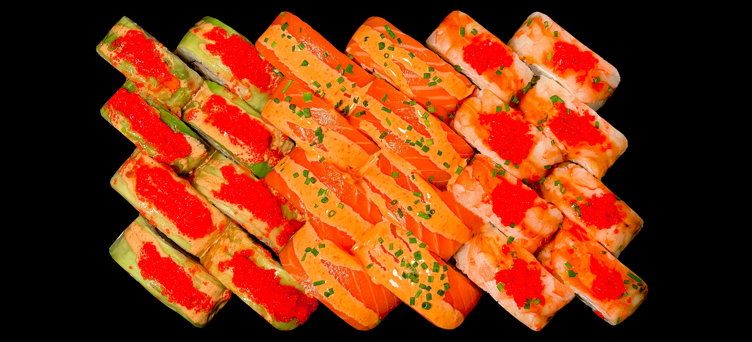 Philadelphia spicy crunch 8 шт / Ebi boom crunch (ролл с креветкой) 8 шт / Tokyo Gold (ролл с угрем и креветкой)