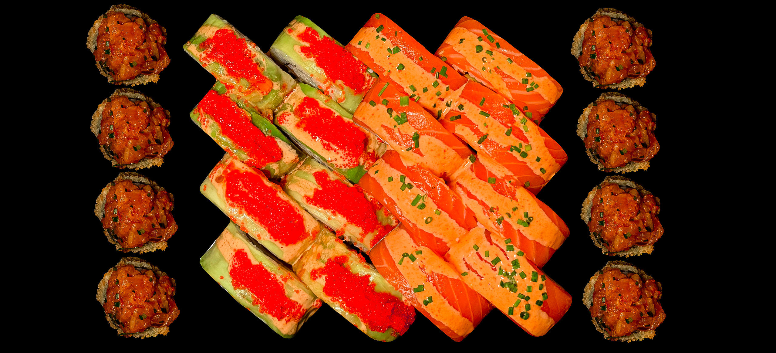 Tempura ebi crunch (чесночная) 8 шт / Tempura tartar 8 шт / Philadelphia spicy crunch 8 шт / Ebi boom crunch (ролл с креветкой) 8 шт